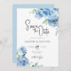 Invitación Blue Baby Blue Floral Leaves Blue Light Save the D