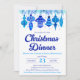 Esta invitación para cenar Navidades incluye baubles de color azul acuático en la parte superior con agujas de pino y follaje Navidad. Puede personalizar de todos los detalles del evento. En la parte trasera de la invitación hay un patrón de ornamentos navideños de color azul acuático. Vea toda la colección coincidente. Todas las obras de arte están ilustradas a mano por Kaitlyn Thomas y están protegidas por los derechos de autor.