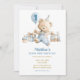 Dusty Blue Bear Boy Beary First Birthday Invitation, Teddy Bear Themed 1st Birthday Invite, Editable Balloon Kids Birthday Party