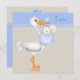 Invitación Blue Beige Gingham Stork Twin Baby Boy Shower