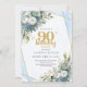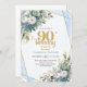 Invitación Blue Botanical Gold Frame 90th Birthday Invite