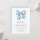 A cute and and classic blue bow baby shower theme featuring an adorable baby blue watercolor bow. A simple and minimal classic baby shower look. Gray text in a mix of serif font and script typography. Celebrate the mom to be in style! You can change the font colors out to whatever you'd like. You can also change the background color on the front and back. Simple Watercolor Blue Bow Boy Baby Shower Invitation.