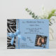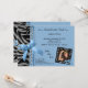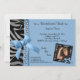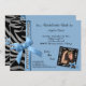 Cinta azul y perlas de plata con rayas de cebra negra y plateada decoran esta invitación de fiesta contemporánea. Sube tu propia foto al funky marco de cebra para personalizar aún más el aspecto. Hay mucho texto de personalizable en esta invitación de moda para agregar la información de su fiesta. También tenemos este diseño en varios colores. Los colores de coordinación en la parte posterior de esta encantadora invitación completan el aspecto y hacen que este diseño de primera calidad sea perfecto para casi cualquier ocasión.