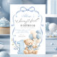 Invitación Blue Bow Coquette Beary First Birthday