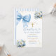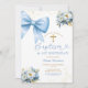 Invitación Blue Bow Coquette Girl Baptism and Birthday Floral