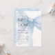 This baby shower invitation features a clean white background with a soft blue watercolor bow in an elegant minimalist style. The back includes a matching marble glitter print that adds a refined finish without real shine.