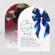 On the front, a deep blue satin bow, painted in watercolor, sets a tone of charming sophistication and feminine romance. Flip it over, and you’ll find space for a personal photo of the bride, adding a heartfelt, personal touch that makes the invitation feel truly one of a kind.