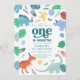 Invitación Blue Boy Dinosaur Boho Primer Cumpleaños