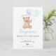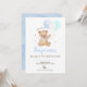 Invitación Blue Boy Teddy Bear Balloon First Birthday