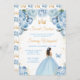 Esta elegante y glamorosa y dulce invitación a los dieciséis años de vida cuenta con una bella princesa con el pelo de morena en un vestido azul claro de bola. El texto combina el guión manuscrito y las fuentes sans serif modernas para un aspecto elegante y sofisticado. Los arreglos florales, mariposa y confitis dorada crean la mezcla perfecta entre rústico y moda. Gráficos de www.etsy.com/uk/shop/SunflowerDayLove