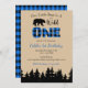 Invitación Blue Buffalo Plaid Lumberjack Primer Cumpleaños