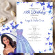 Invitación Blue Butterflies And Dress 18th Birthday Debut