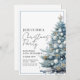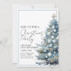 Celebra la temporada con esta elegante invitación a la fiesta de los Navidades que incluye un árbol de navidad azul acuático decorado con baubles plateados, acentos dorados y una estrella de topper. Perfecto para reuniones festivas, este elegante diseño le da un toque mágico a su evento vacacional. Personalizar con los detalles de su fiesta para crear una invitación memorable.