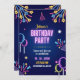 Invitación Blue Colorful Neon Birthday Party Invitation