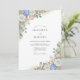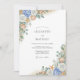 This design evokes a serene coastal ambiance with its charming blue and coral floral arrangements. Delicate blooms mingle with subtle textured elements, creating a soft and romantic feel. The palette suggests a breezy, seaside affair, perfect for a tranquil celebration.