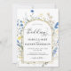 Invitación Blue Dainty Floral Gold All In 1 QR Code Boda