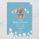 Invitación Blue Daisy Teddy Bear Baby Shower