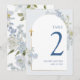 Invitación Blue Delphinium Floral Boy Baptism Table Number