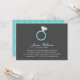 Añade un toque de lujo a tu ducha de novia con esta invitación al anillo de diamantes azules. Con un impresionante diseño de anillo de diamante azul en un ambiente elegante y moderno, esta invitación exuda elegancia y sofisticación. El texto completo del personalizable garantiza que los detalles del evento destacan, lo que hace que sea perfecto para una celebración glamurosa.