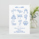 Invitación Blue Doodle Tropical She's a Catch Bachelorette