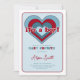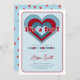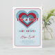 Adorable invitación a la ducha de bebé con temática valentina con corazones rojos y azules.