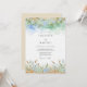 A dreamy watercolor wash of blues and greens evokes a soft, artistic mood. Delicate flora and wispy grasses bloom across the top and bottom edges. This design suggests a romantic and nature-inspired celebration.