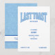 Raise a glass to the bride-to-be with this “Last Toast” bachelorette party invitation. Designed with bold varsity-style lettering and a minimalist front, this invite sets the tone for a stylish and unforgettable celebration.