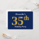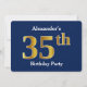 Invitación Blue, Faux Gold 35th Birthday Party + Custom Name