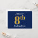 Invitación Blue, Faux Gold 8Cumpleaños Party + Custom Name