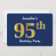 Invitación Blue, Faux Gold 95th Birthday Party + Custom Name