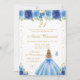 Invitación Blue Floral Blonde Hair Princess Birthday Party