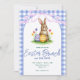 Invitación Blue Floral Bunny Watercolor Gingham Ribbon Easter