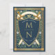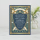 Invitación Blue Floral Fantasy Swords Shield Monogram Wedding