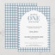 Celebrate the mommy-to-be with this Blue Gingham Baby Shower invitation featuring a classic checkered pattern and soft modern typography. The phrase “A Little One Is On The Way” is part of the fixed design and cannot be edited, while all other text can be personalized directly on Zazzle. With its timeless gingham pattern and light blue tones, this invitation is perfect for a baby boy shower with a clean and classic look.