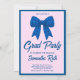Invitación Blue Gingham Bow Photo Graduation Party