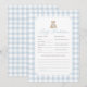 Invite friends and family to fill out their baby predictions and advice with this elegant blue gingham teddy bear baby shower game card.