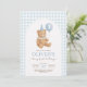 Invitación Blue Gingham Teddy Bear Balloon Boy 1er cumpleaños