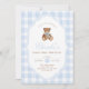 Invitación Blue Gingham Teddy Bear Beary First Birthday