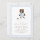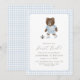 Invitación Blue Gingham Teddy Bear Soccer First Kick