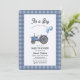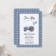 Invitación Blue Gingham Tractor Balloon Baby Shower
