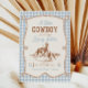 Saddle up for a sweet celebration! This gingham cowboy baby shower invite features western flair with a charming twist—easy to edit, download, and print or share digitally.