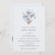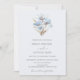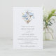 This elegant wedding invitation features AI created white 3 dimensional blue and gold flowers. With your photo and a scannable qr code for your wedding website on the backside.