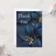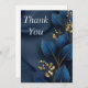 Chic and modern, this thank you card features elegant blue and gold leaves set against a deep navy blue background. A stylish way to convey heartfelt thanks for any occasion. Customizable for your personal message.