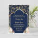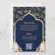 Invitación Blue Gold Paisley Floral QR Código Indio Boda