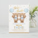 Esta adorable invitación temática de osito de peluche te hará sonreír a los clientes. El suave color azul pastel y el dorado hacen que este diseño sea perfecto para una ducha de bebé gemela. Personalice la invitación con sus detalles y si desea reorganizar el estilo y la ubicación del texto, pulse el botón "Haga clic para más personalizares".
