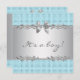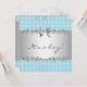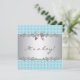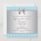Gris plateado con invitación a la ducha de un niño pequeño, azul y blanco, de fondo a cuadros. Añade tus detalles al frente y al fondo simplemente eligiendo el botón "Personalizar" del naranja para empezar a añadir los detalles del evento, el estilo del tipo de letra, el tamaño y el color del tipo de letra y la redacción. Tenga en cuenta que todos los diseños de invitación que encontrará en Zazzle son gráficos impresos en papel plano sin joyas, arcos, arcos, piezas grabado en relieve o añadidas.