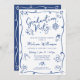 Invitación Blue Hand Drawn Doodles Graduation Fun White Party