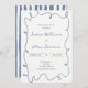 Invitación Blue Hand Written Pinstripes Whimsical Wedding