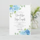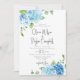 Invitación a la boda de acuarela floral. Elegante invitación de boda floral con hermosas flores de hidraangea de color agua pintadas a mano y vegetación en color azul claro con elegante escritura caligráfica. Puede personalizar la redacción, el estilo de letra, el color y el tamaño delante y detrás de la tarjeta. Por favor, no dude en ponerse en contacto conmigo para encontrar artículos que coincidan.