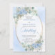 Invitación Blue Hydrangea Greenery Gold Oval Wedding Invite